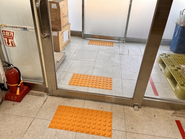 시각장애인을 위한 점자블록 및 표시가 제대로 되어 있지 않은 점이 있어서